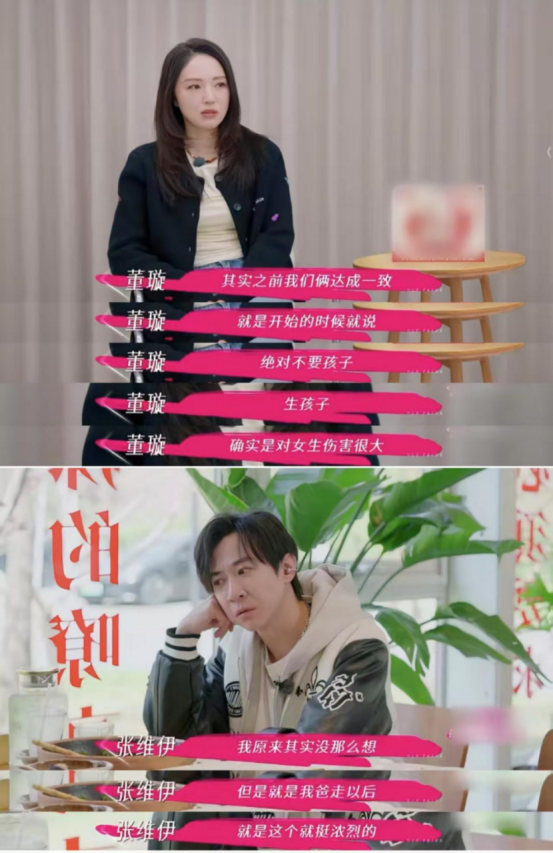 而关于孩子,婚前保证绝对不生育的张维伊,婚后上演超绝变脸,话里话外都是希望已经45岁的董璇能够冒着高龄产妇的危险给他生儿育女。